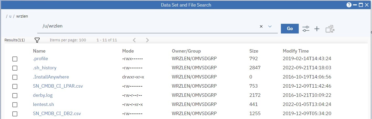 When you do a File List in 'Data Set and File Search' you get the name of the files and more column like mode, Owner/Group, Size, Modify Time. When you do a Data Set List in 'Data Set and File Search' you get the name and NOTHING else. Because I think you use the 'list the z/OS data sets on a system' z/OSMF REST service to receive this data I know that there are more columns like the important vol, migr and dsorg. This data is very esential for datasets, like in DSL under ISPF. Also to see if I use the right data set on the right volume (see my attached picture about 5x SYS1.PARMLIB).